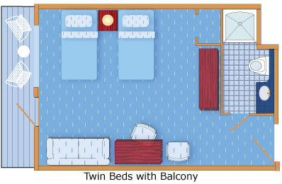 The intimate atmosphere of each Single stateroom is ideal for the solo traveler. At 248 sq. ft. each room has a twin bed, a full-size bathroom, a private balcony, and plenty of room to spread out and make yourself at home.